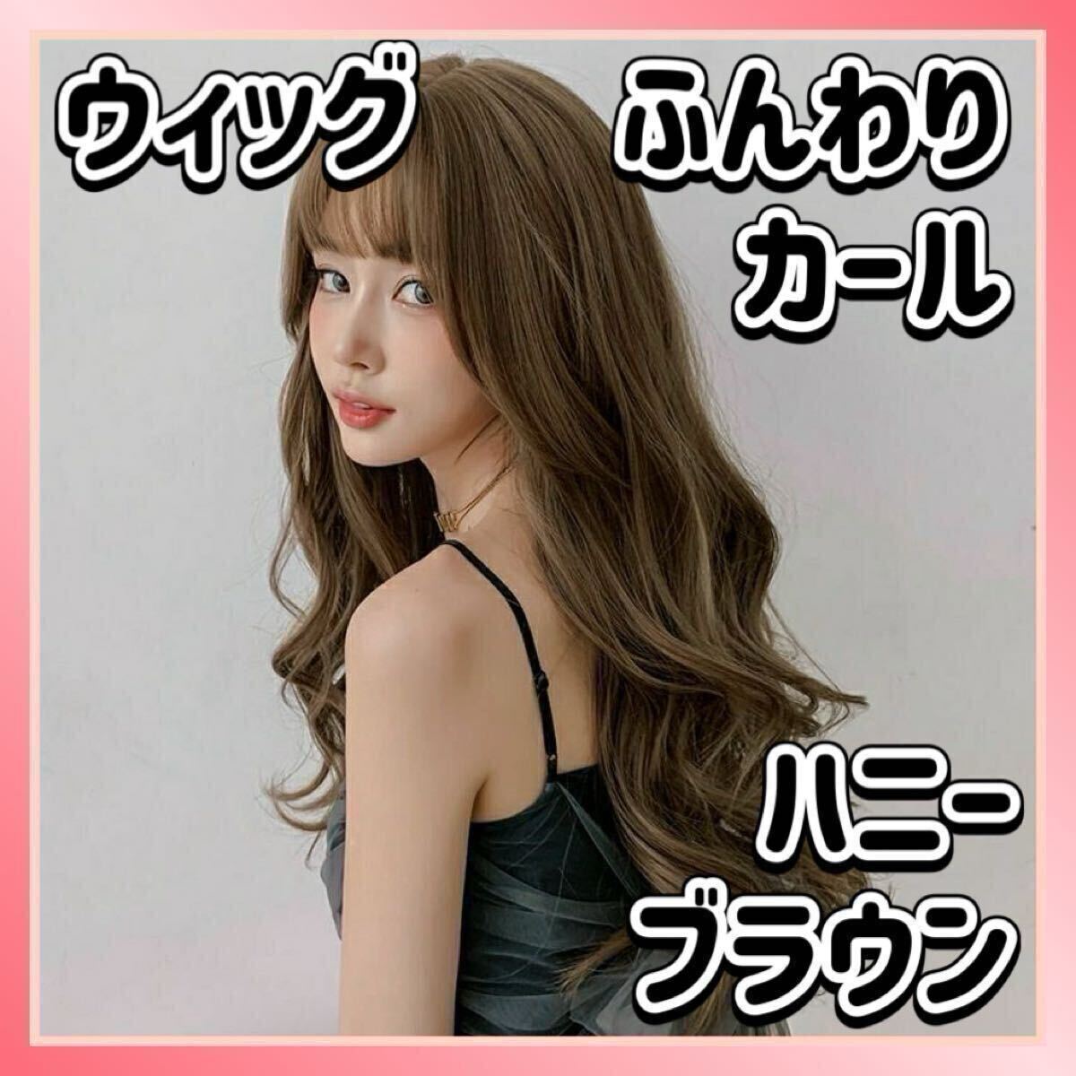 - ウィッグ ふんわりカール 巻き髪 ロング ハニーブラウン 茶色 フルウィッグ かつら 医療用 コスプレ 耐熱 前髪あり カール
