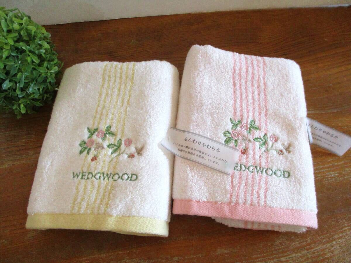 > 【未使用】ウェッジウッド WEDGWOOD ワイルドストロベリー フェイスタオル 色違い 2枚組 ピンク&イエロー ペア 日本製 綿100% 西川産業