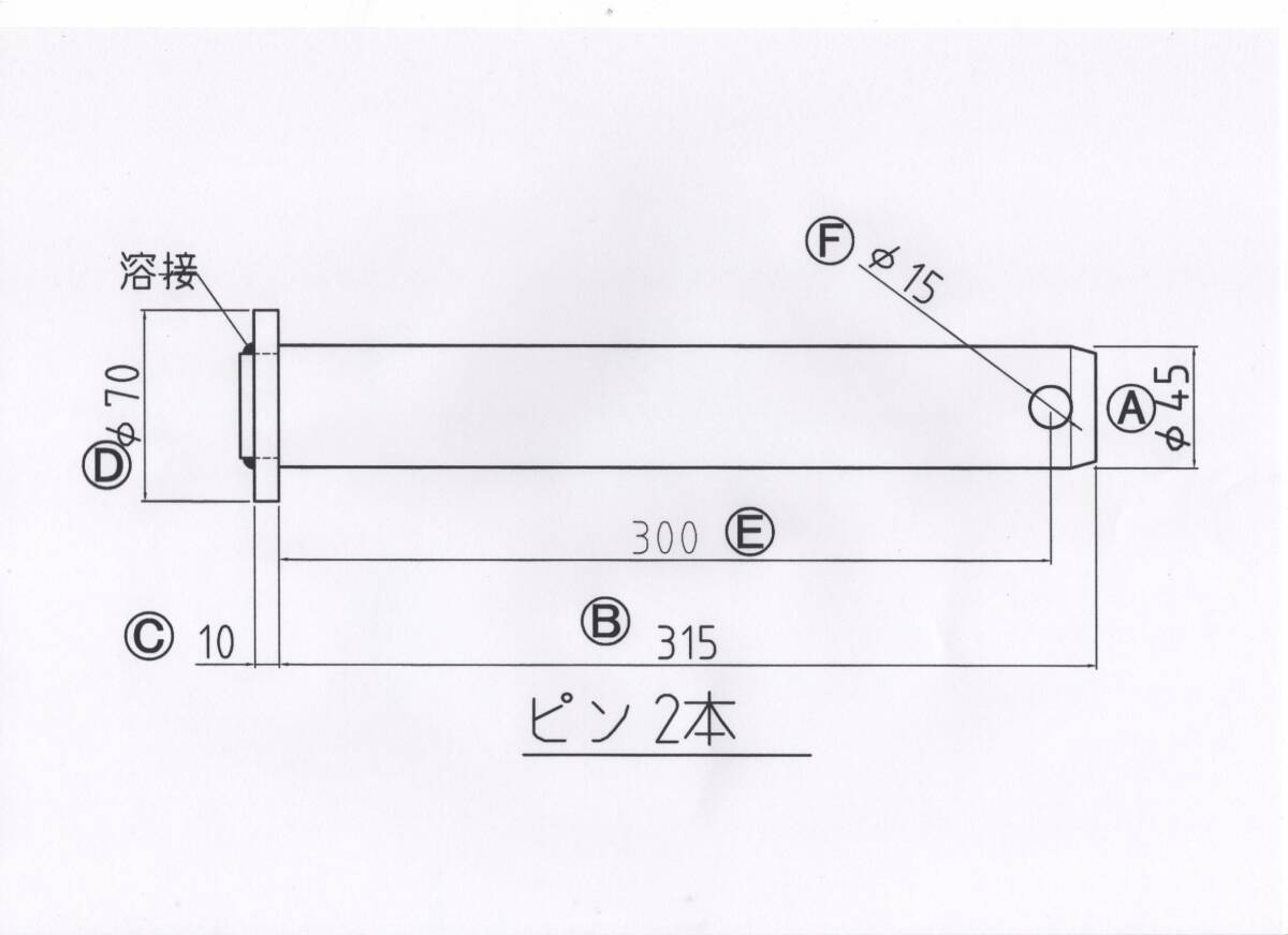 - NO.2106 φ45用 溶接ツバ下315mm バケットピン 重機用 2本セット