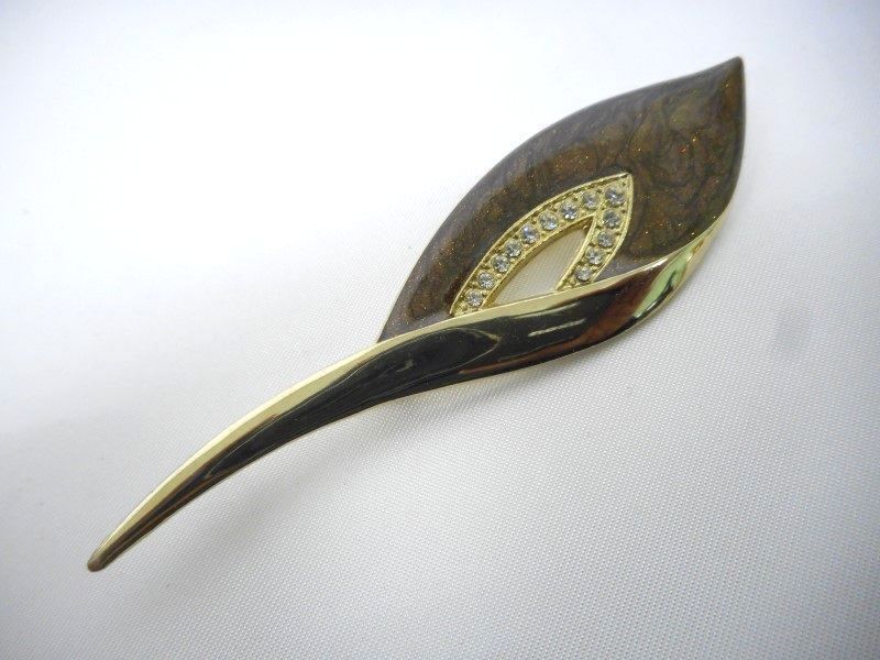 - ブローチ フラワー ブラウン×ゴールド ラインストーン M-131