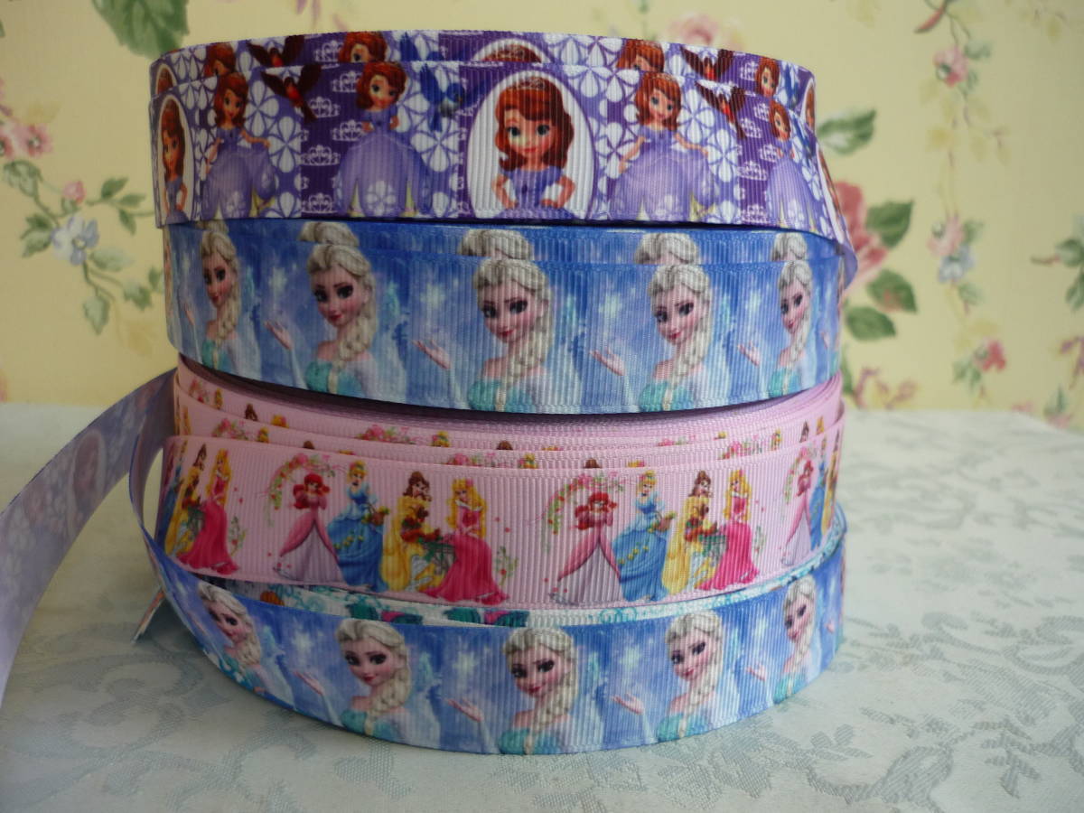 - 4本セット★グログランリボン★ソフィア アナ雪 プリンセス シンデレラ★1m×4柄★4mセット★22mm幅★ハンドメイド資材★ヘアゴム