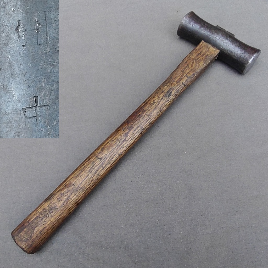 - 丸玄能 両口玄能 在銘 中 金槌 金づち ハンマー 玄翁 大工道具 工具 日本製 重量約480g 頭約92㎜ 打面約30×28㎜ 全長約310㎜【4468】【b】