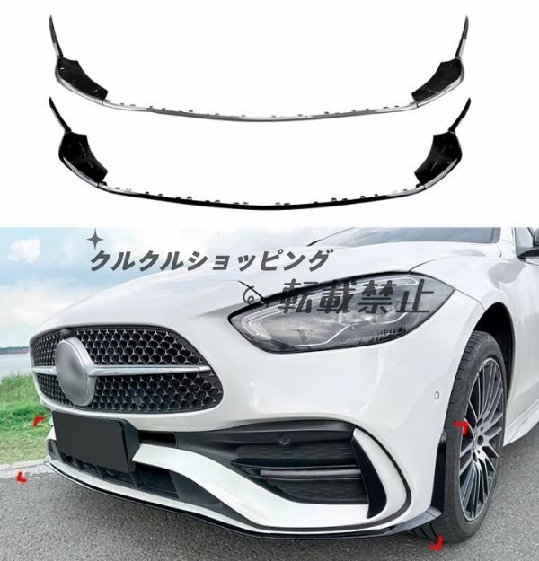 > メルセデス ベンツ Cクラス W206 S206 C200 C260 C43 AMG 2022+ フロント スプリッター バンパー ディフューザー エプロン バンパー フラッ