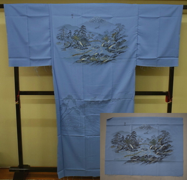 - A26-9【凛々】即決 新古品 ポリエステル 男物 長襦袢 羽裏地 2点組 青灰 風景 仮絵羽 未仕立て品