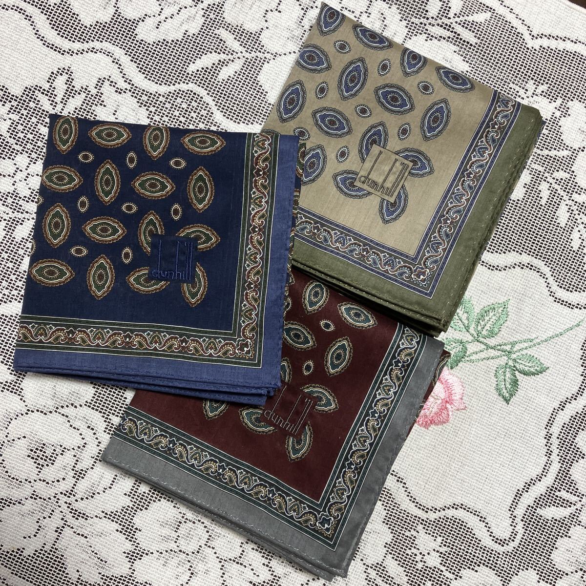 - これ以上のお値下げありません 送料無料 ダンヒルメンズハンカチ3枚⑦セット♪♪ お色違い おちついた色柄 素敵なメンズに 紳士用