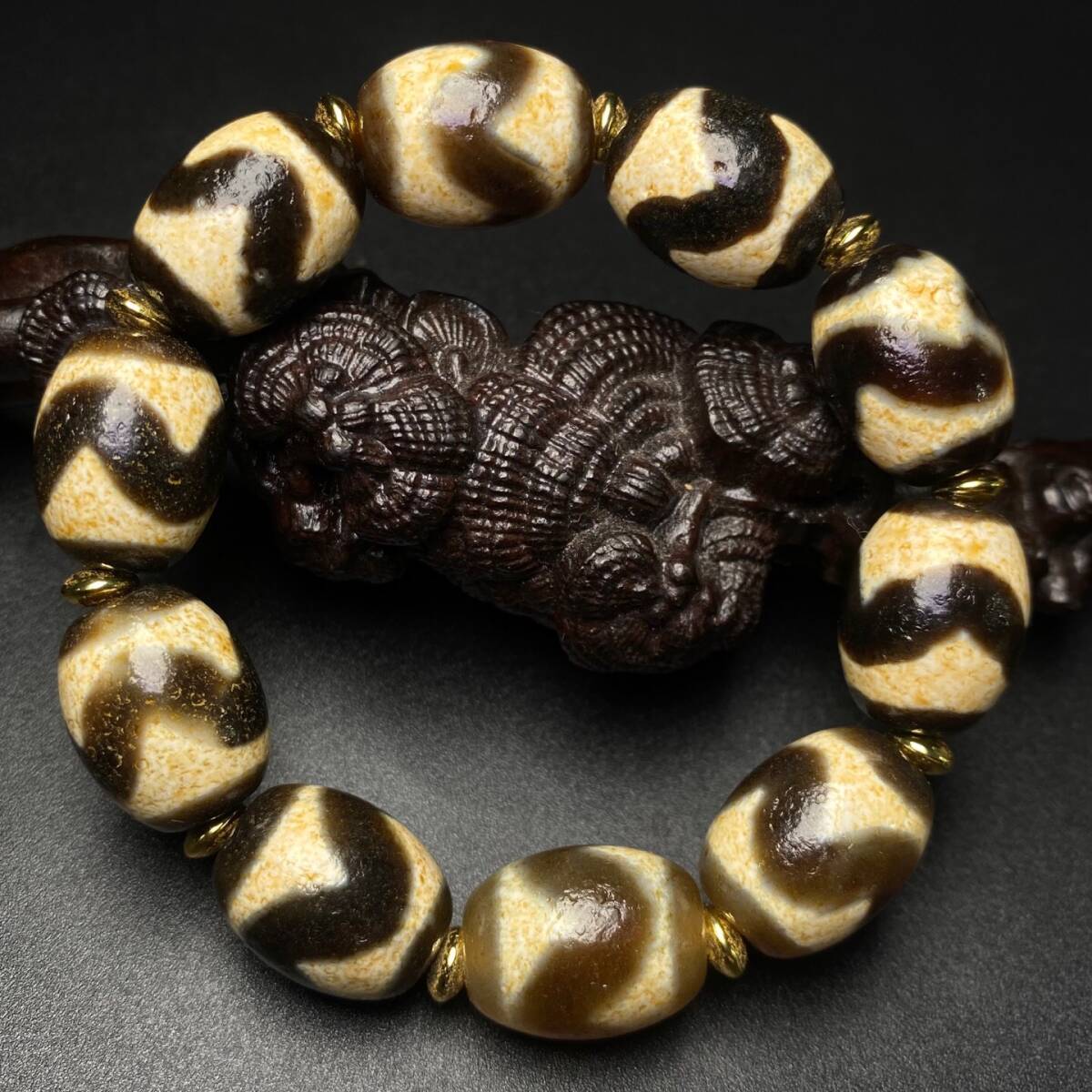 - ▽鴻▽ 瑪瑙製 細密彫 虎牙天珠チェーン 根付 裝身具 古賞物 古董品 時代物 稀少珍品 中国古玩 中国古美術
