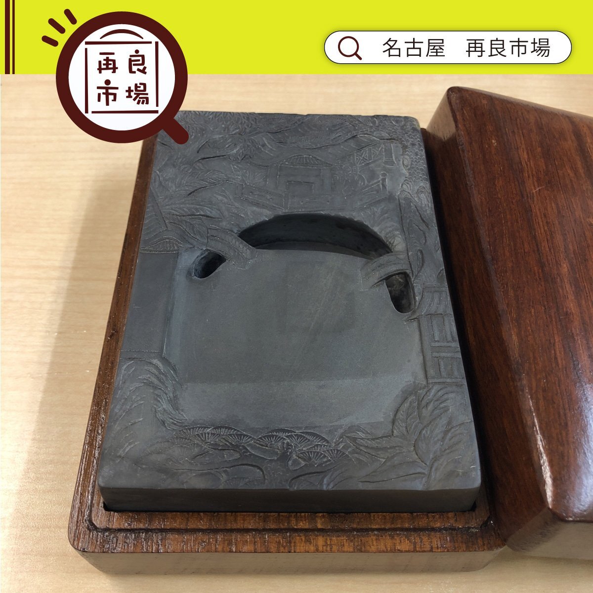 > 硯◆すずり 蘭亭硯(らんていけん)麻子坑端渓硯(ましこうたんけいけん)専用木箱付き 書道具 8.5×12.7cm 彫刻 名古屋