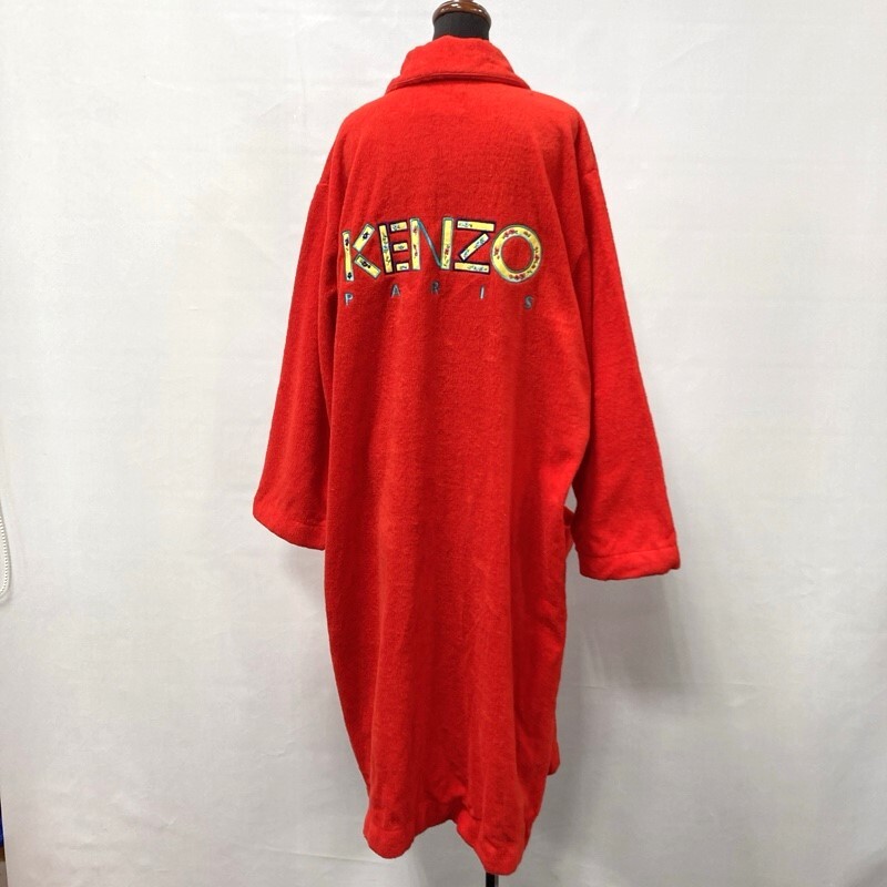 - KENZO/ケンゾー/バックフラワーロゴ刺繍/パイル生地ガウンコート/レッド/ベルトループ付き/フリーサイズ/バスローブ
