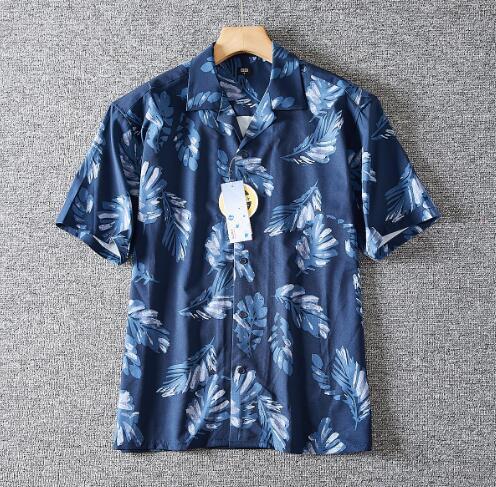 - 人気品新品 アロハシャツ 半袖 サマー メンズ オープンカラー シャツ 春夏 薄手 葉っぱ柄 総柄 リーフプリント盛夏 開襟 吸湿 速乾/紺色L