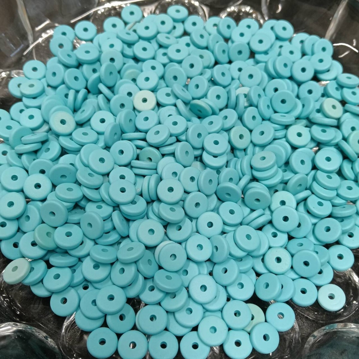 > ☆未使用 大量 ウッドビーズ ラウンド フラット ボタン 約56g 8mm 水色 ブルー 大粒 ヴィンテージ パーツ アクセサリー ネックレス B-1