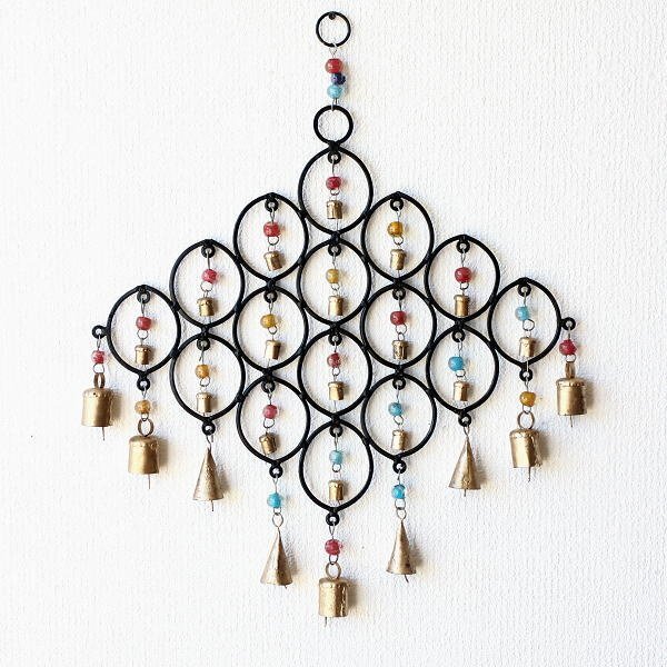 - 壁飾り アイアン ベル 鈴 吊り下げ おしゃれ 壁掛け オーナメント アイアン雑貨 ビーズ付き鉄ベル M 送料無料(一部地域除く) tom6241