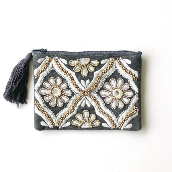 - ポーチ 小物入れ おしゃれ マチなし かわいい ミニ ビーズ刺繍 花柄 デザイン ビーズ刺繍ポーチ CH 送料無料(一部地域除く) kan1580