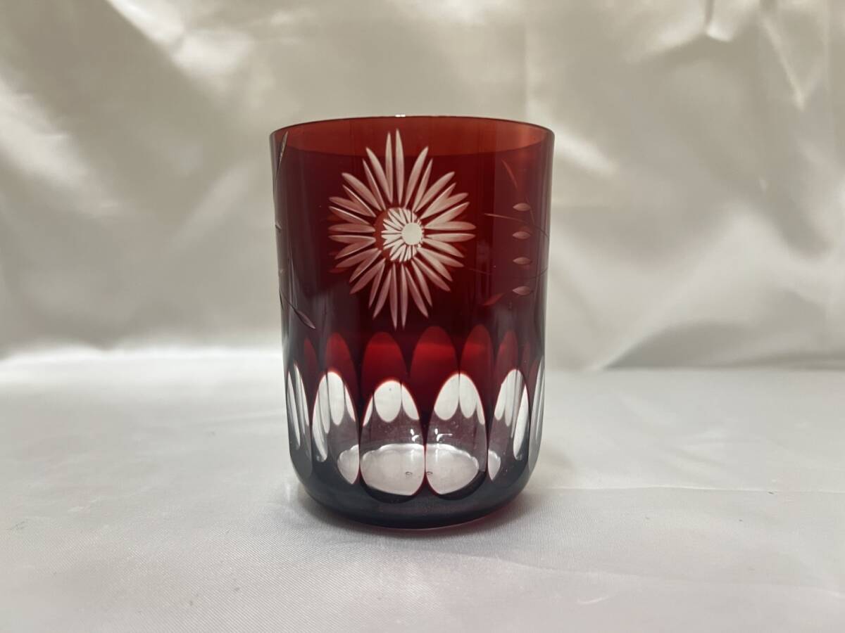 - 7B) グラス 切子 赤切子 昭和レトロ工芸 ガラス 赤色 0831