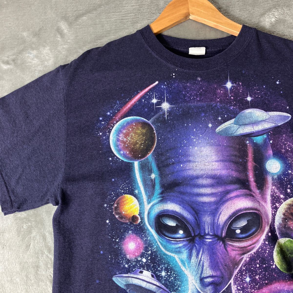 - アートTシャツ 宇宙人 スペース柄 アート 紫パープル M相当 古着 00s 半袖Tシャツ