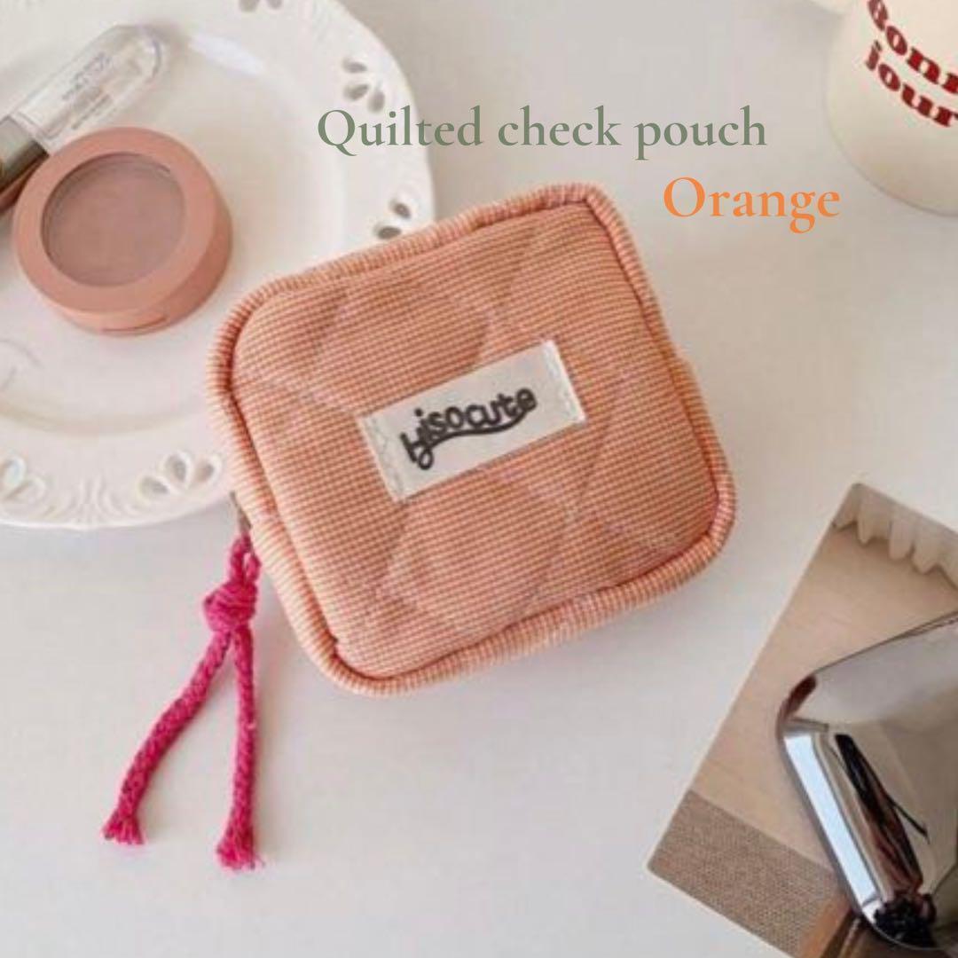 - ポーチ マルチポーチ チェック柄 オレンジ キルティング マルチケース チェック ポーチ クッション性