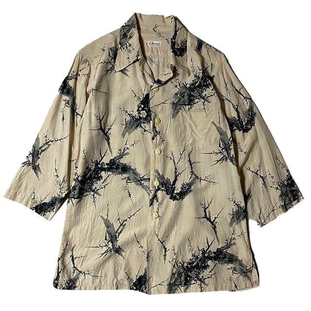 - 80's S.Morisako 梅和柄 開襟アロハシャツ ヴィンテージ G153