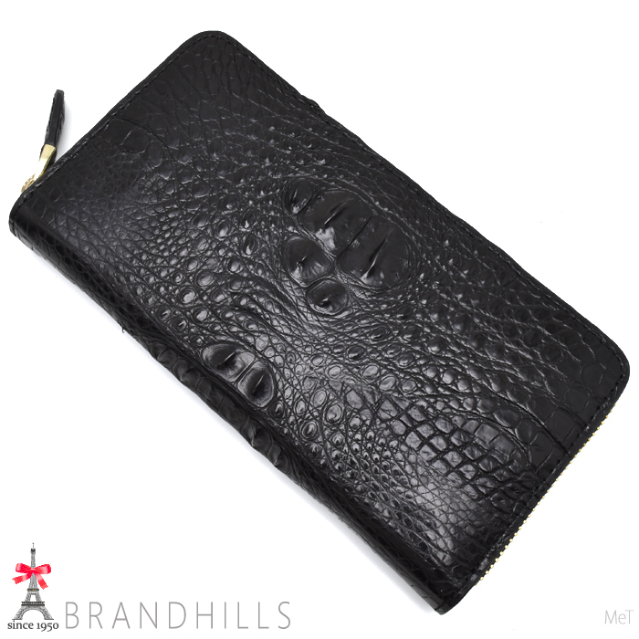 - クロコダイル 長財布 メンズ レディース ブラック マット加工 ラウンドファスナー ホーンバッグ 背ワニ 新品