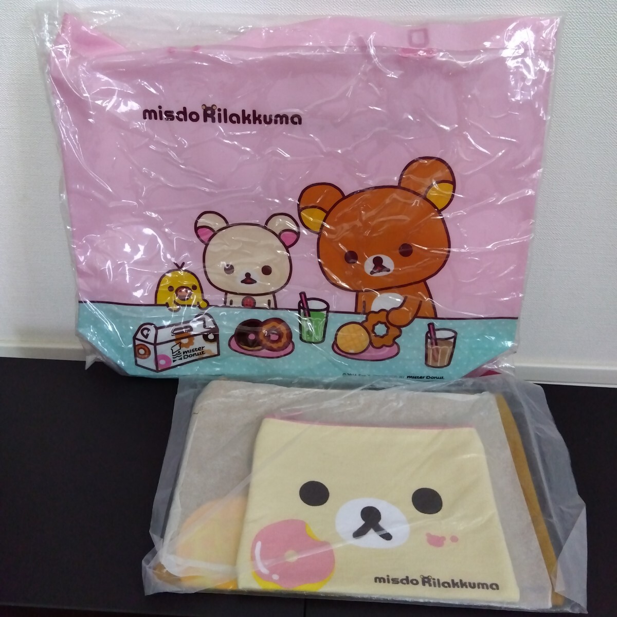 > ☆未使用品 ミスド リラックマ プールバッグ ビーチバッグ ピンク色 + ミスド ポーチセット San-X☆希少即決