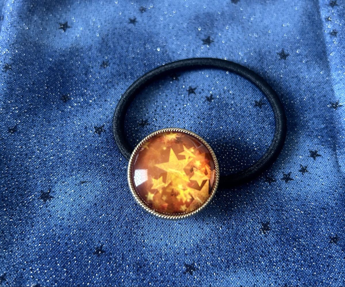 - 在庫整理 ハンドメイド ヘアゴム ガラスカボション 夜空 星 アクセサリー