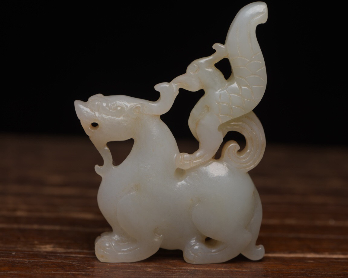 - ▽鴻▽ 和田玉製 細密彫 龍鳳呈祥 置物 賞物 古賞物 古董品 時代物 稀少珍品 中国古玩 中国古美術