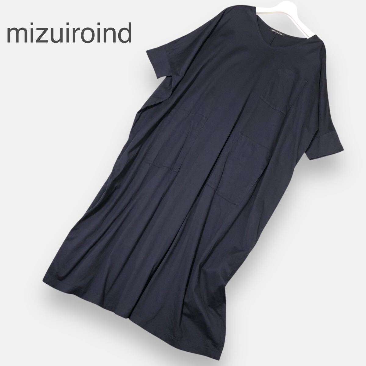- 美品 mizuiroind コットン100% 洗える ロング丈 ワンピース F 日本製 ミズイロインド