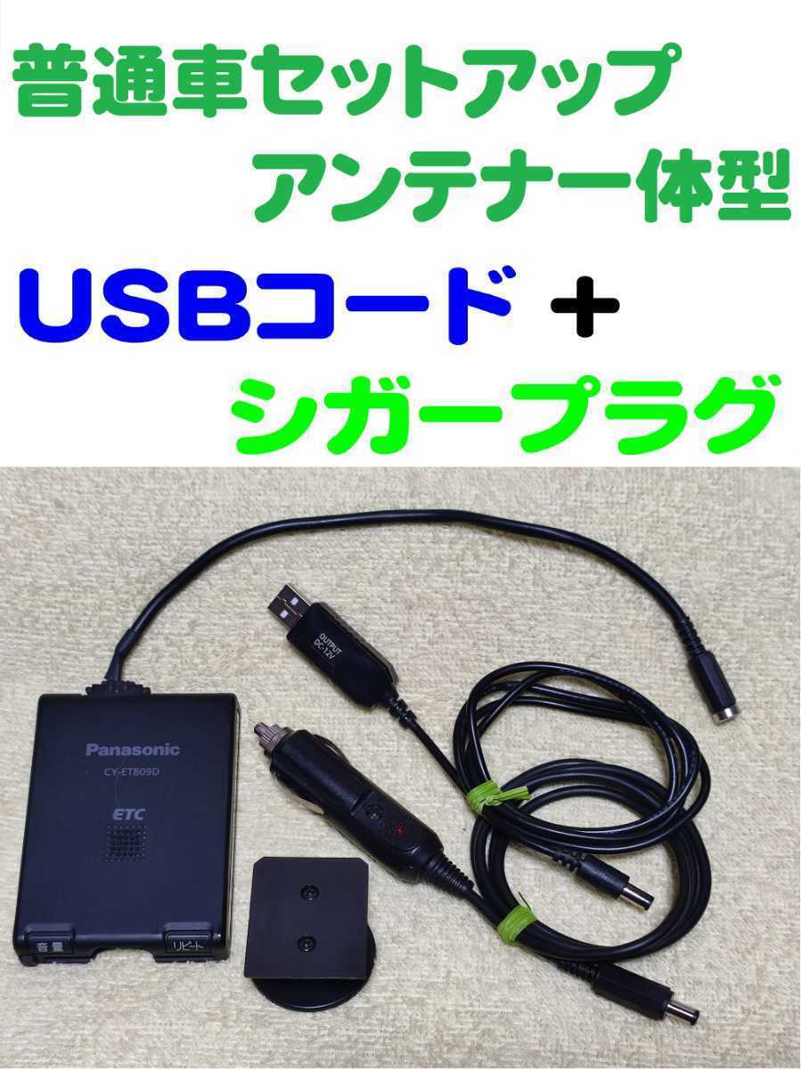 - 普通自動車セットアップ 小型アンテナ一体型ETC車載機 パナソニックCY-ET809D USBコード + シガープラグコード 2電源で使用可能