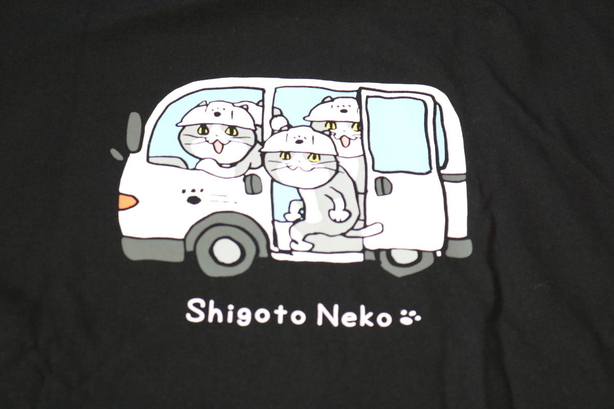 - 仕事猫 Tシャツ メンズ 3L 黒 ワゴン車 現場猫 ネコ くまみね 新品 未使用