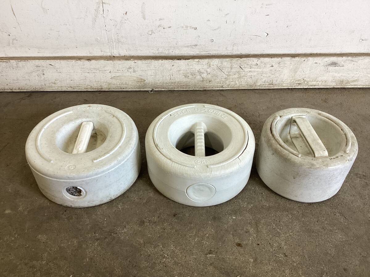- △ v 岐阜発/ プラスチック製/ ウエイト/ オモリ/ 重し/ 漬け物石/ 6kg/ 5kg/ 3.5kg/ 3個セット/ 割れあり/ 現状品/ R7.8/28 △