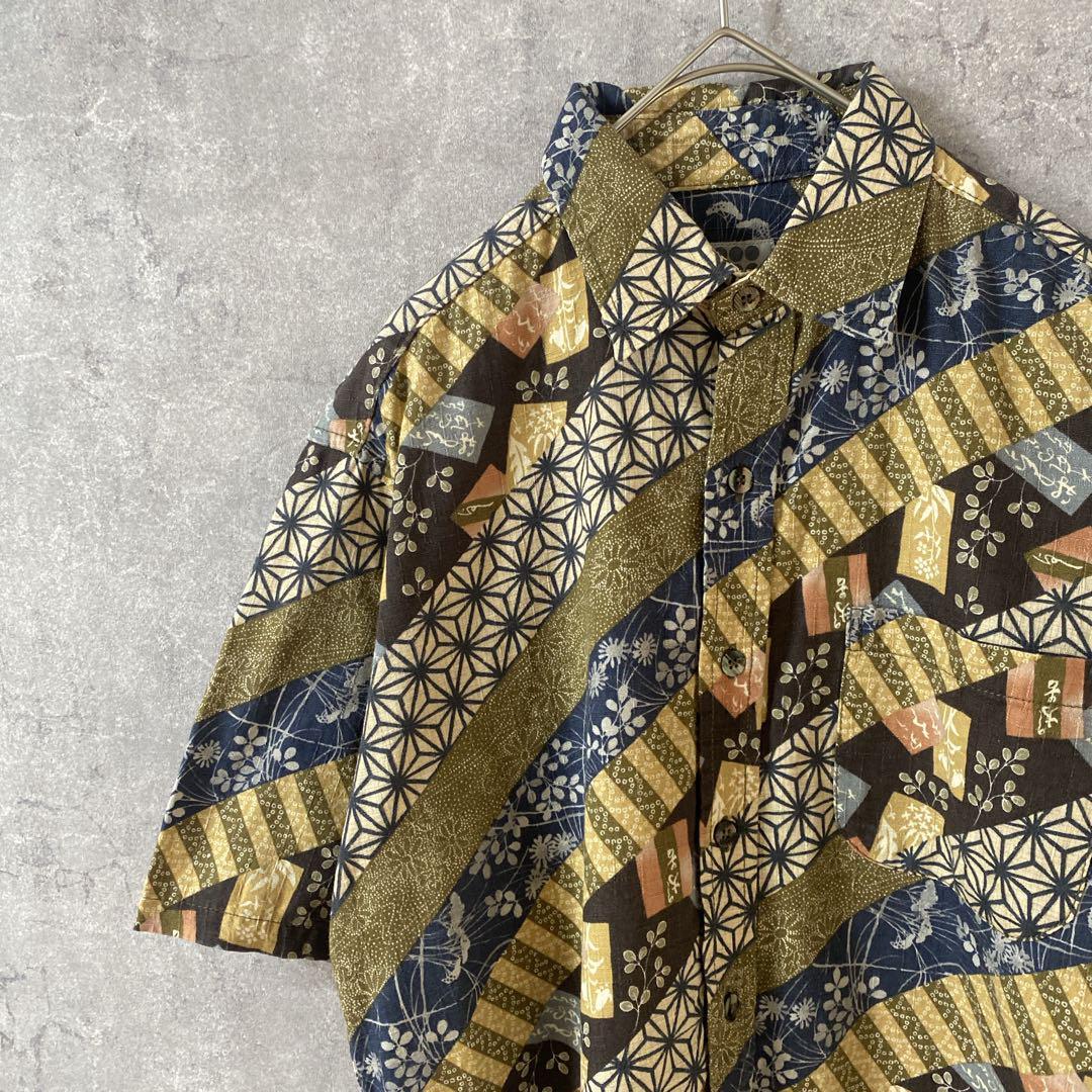 - TAKEO KIKUCHI 和柄模様シャツ 半袖 サイズ2 総柄シャツ