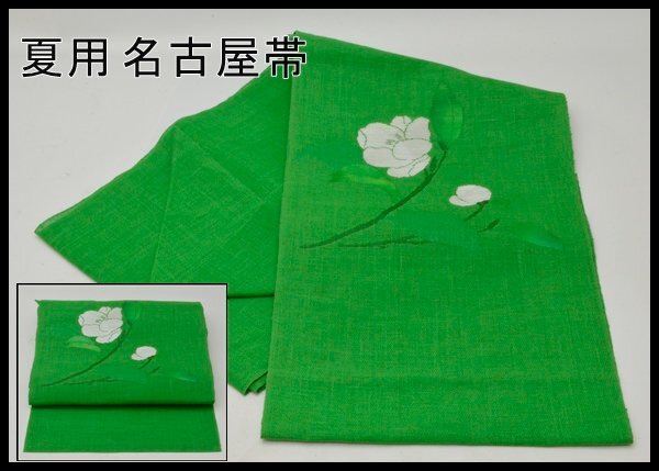 > 送料込 夏用 名古屋帯 グリーン系 お茶会 お稽古 小紋 色無地 浴衣 絽 紗 麻? オシャレ着物 カジュアル リメイク材料