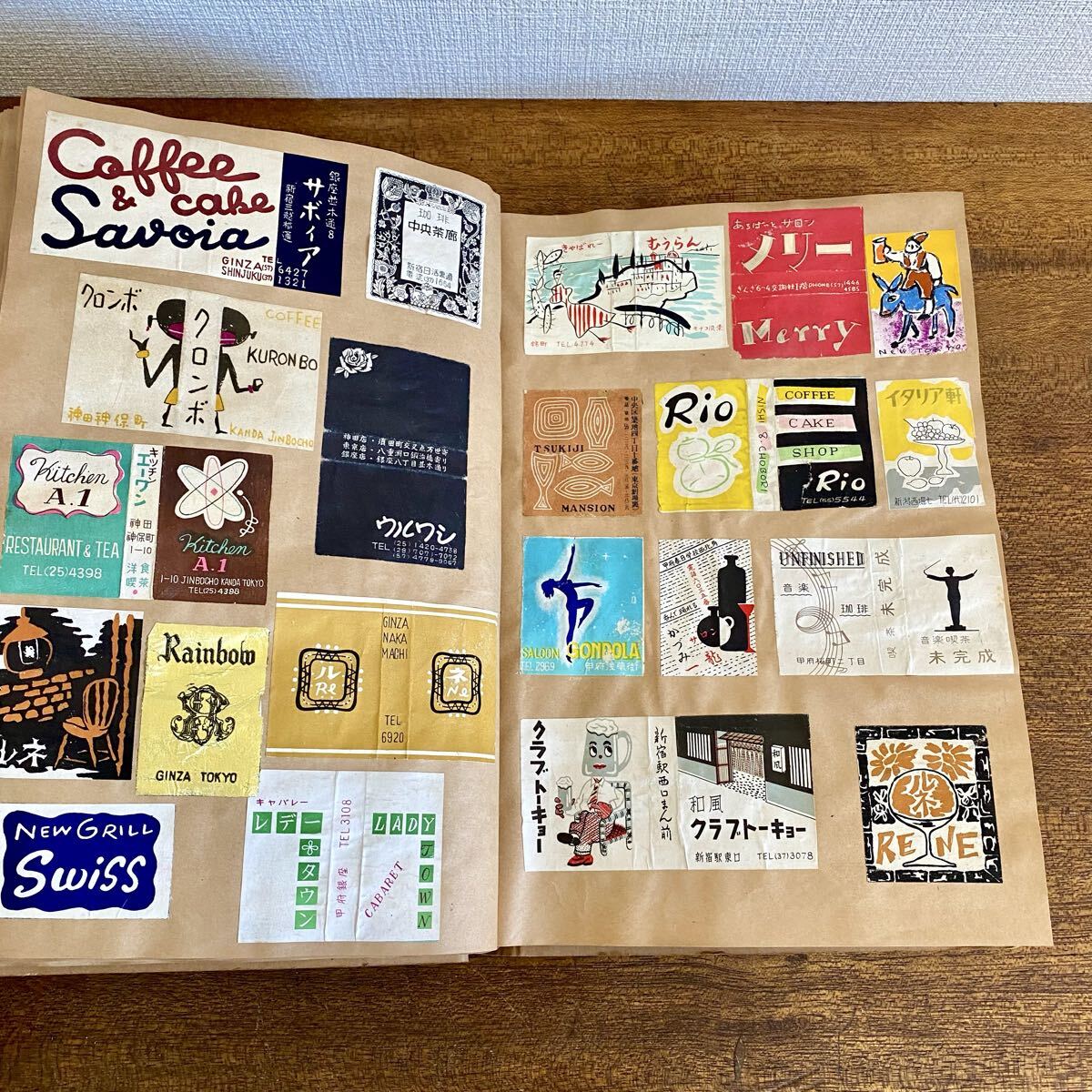 - 昭和レトロ 古いマッチラベル 広告 など スクラップ 300枚以上 / 喫茶店 銀行 菓子店 カフェ レストラン まとめて 当時物