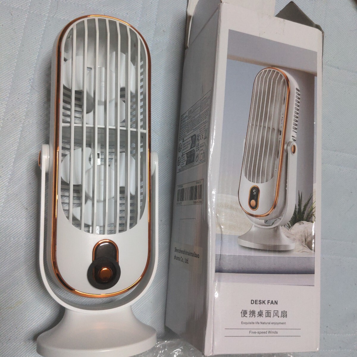 - 卓上USB携帯ファン(白) 数量5段階調整可能、新品未使用 ベンチレーター