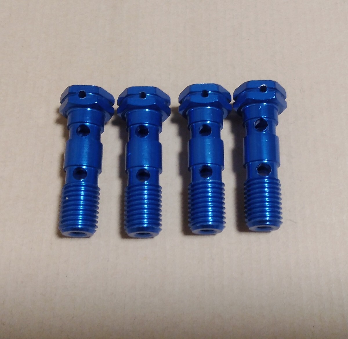 > ☆ 激安新品!アルミバンジョーボルト(ダブルタイプ)M10×P1.25 ブルーアルマイト 4本セット 送料無料(定形外郵便にての発送)