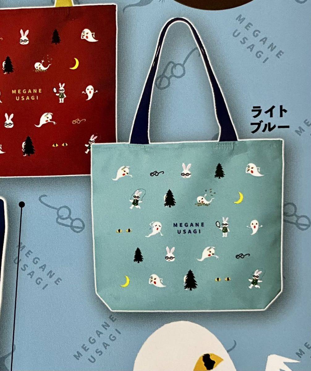 - ★ガチャガチャ★せなけいこ 貼り絵絵本めがねうさぎトートバッグ ライトブルー