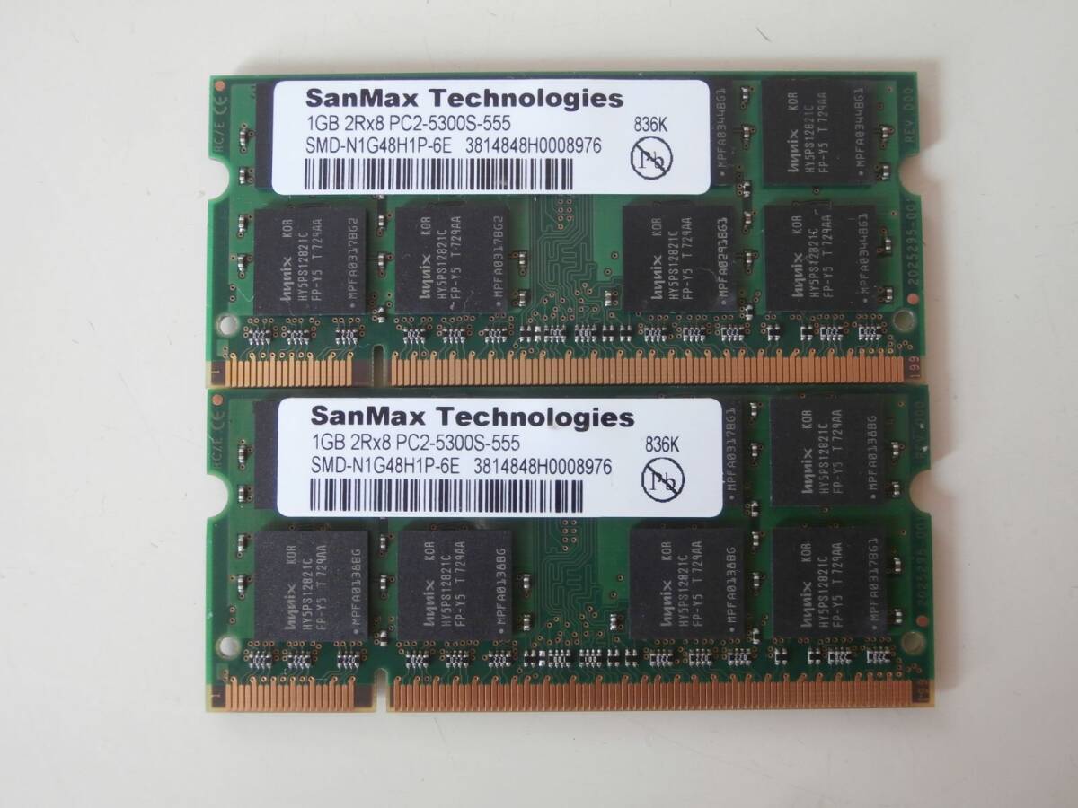 > DDR2 667 PC2-5300 200Pin 1GBx2枚セット hynixチップ ノート用メモリ
