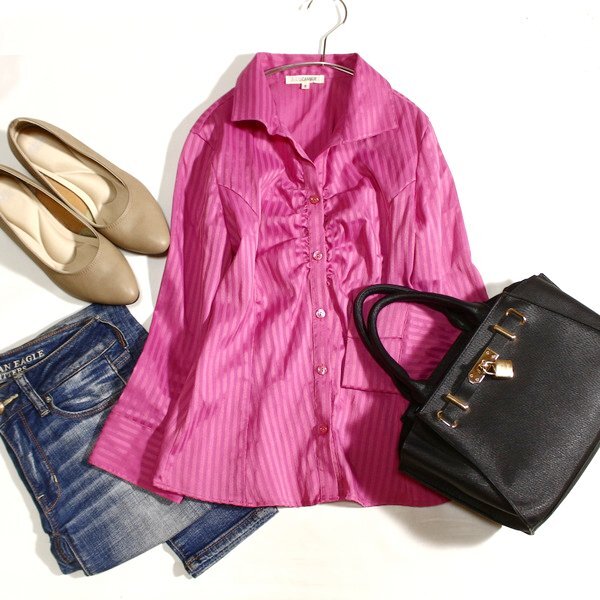 - 美品 NARACAMICIE ナラカミーチェ 綺麗め同色ストライプ柄 ストレッチ ブラウス 0号 S 春 秋 25C08