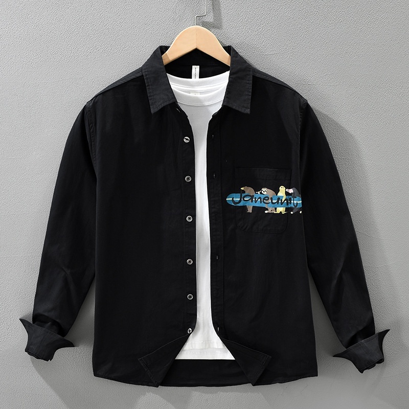 - 長袖シャツ コットンシャツ シャツ シャツジャケット 新品・メンズ カジュアルシャツ 開襟 トップス 春夏秋服【M7708】黒 3XL