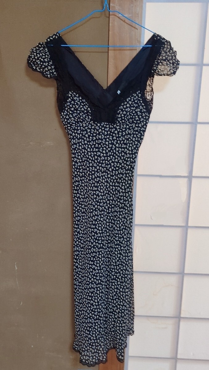 - ANNASUI小花柄胸元レ一スロングワンピース ドレス キャミソールワンピース ノースリーブ