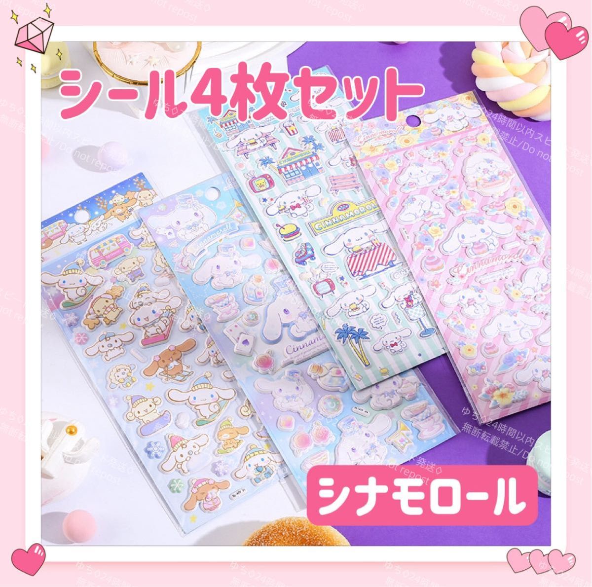 - おまけ◎ 海外限定 サンリオ 立体 シール ステッカー 4枚 PVC 防水 デコ コラージュ アレンジ ぷっくり シナモロール