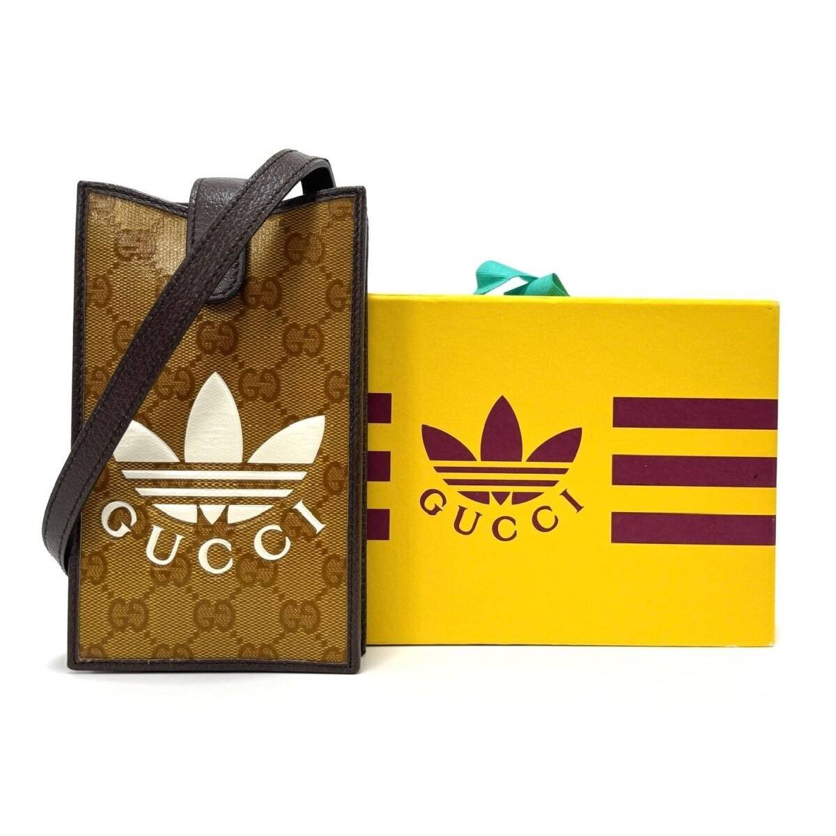 > グッチ アディダス ショルダーバッグ スマホショルダー ミニバッグ 肩掛 斜め掛 GGクリスタル ベージュ ブラウン レザー PVC GUCCI adidas
