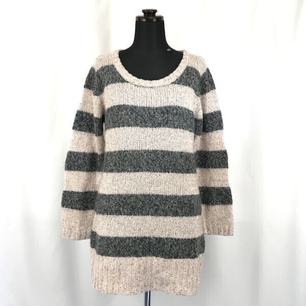 - ELLE/エル★ロング丈セーター/ミニワンピース【レディースL/40/ピンク×グレー/ボーダー】◆BG746