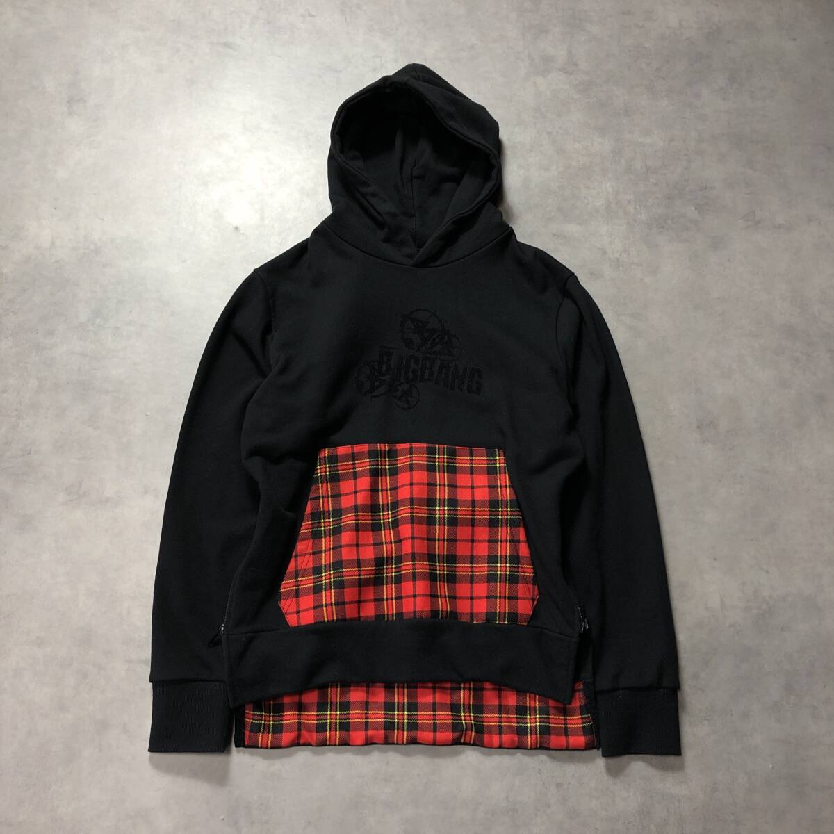 > WH061●BIGBANG チェック切替パーカー ●M● 黒/赤チェック 公式グッズ ビッグバン
