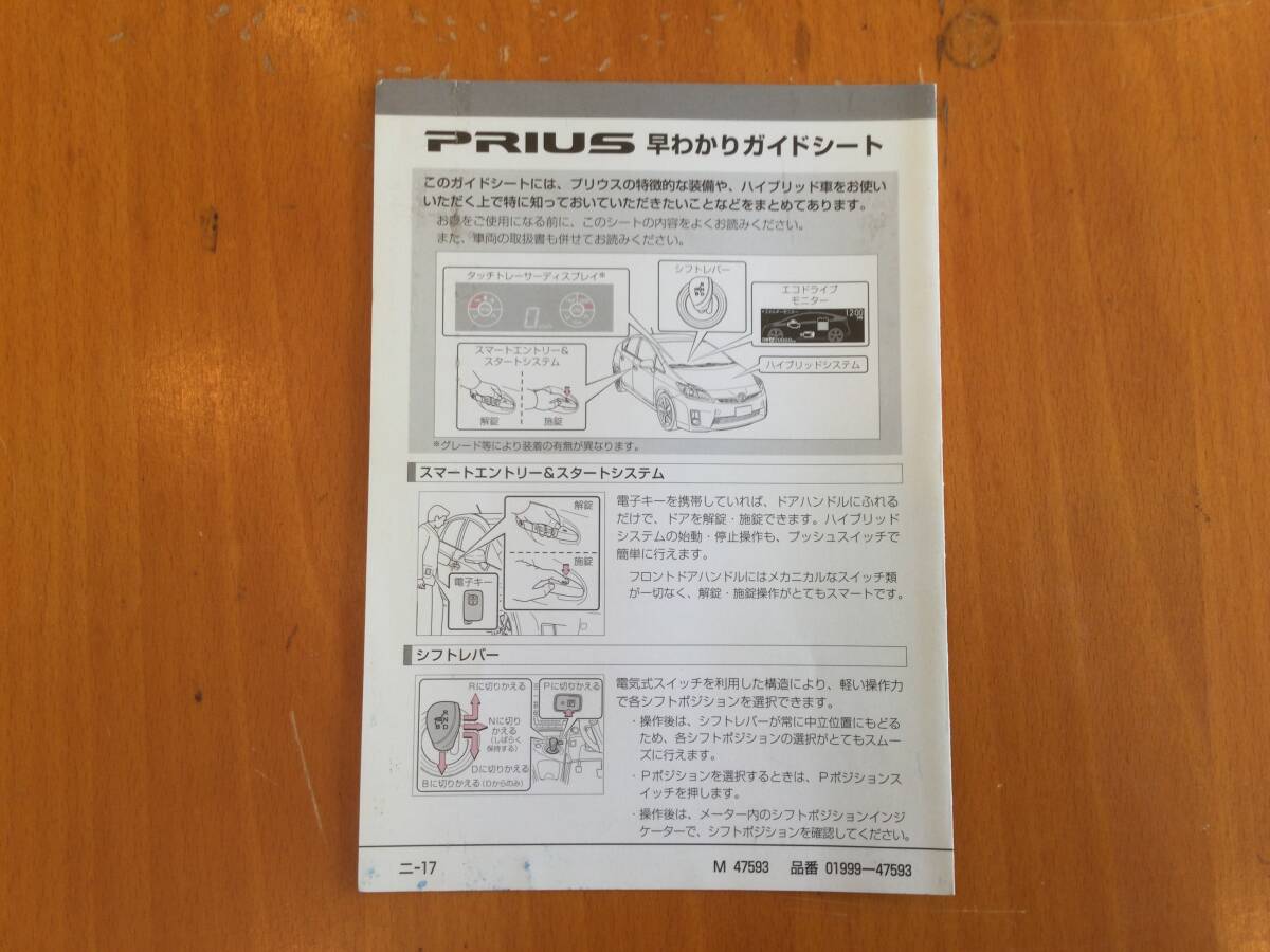 - プリウス 30型 令和22年 早わかりガイドシート 取扱説明書