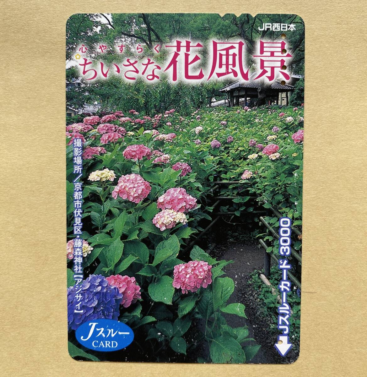 - 【使用済】 花Jスルーカード JR西日本 心やすらぐちいさな花風景 京都市伏見区・藤森神社(アジサイ)