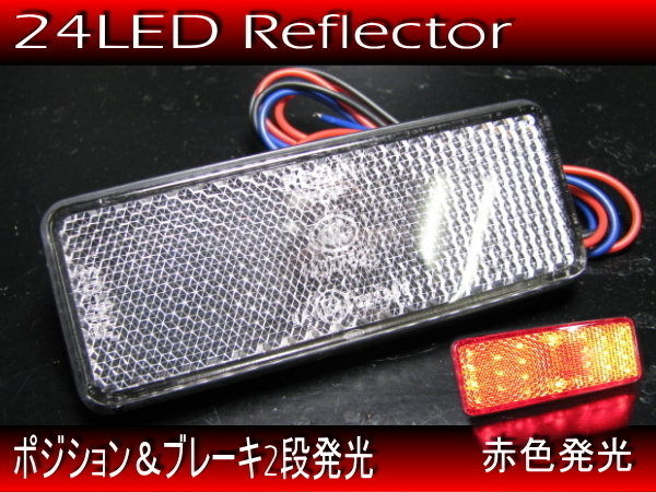 - 汎用 バイク 新品 リフレクター 反射板 クリア CL / 24LED 3本線 テールランプ / ブレーキランプ連動可能