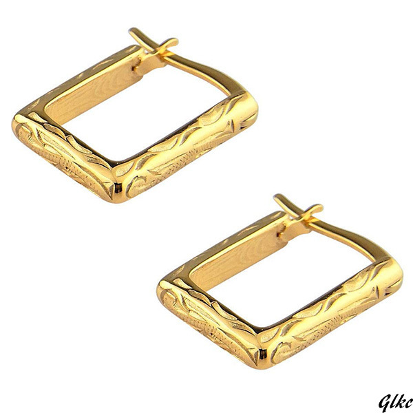 - 【サージカルステンレスで肌に優しく、金属アレルギーにも安心】 ハワイアンピアス フープピアス スクエア キャッチレス イエローゴールド