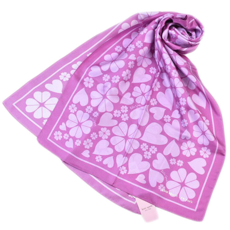 - スカーフ シルク ケイトスペード ニューヨーク ストール レディース ハート クローバー ピンクパープル 薄手 春 夏 絹100%