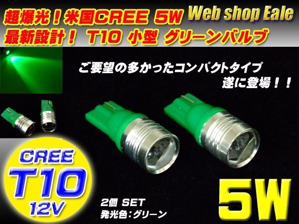 - T10 LEDバルブ グリーン 緑 米国CREE製5W プロジェクター搭載 ウェッジ球 2個セット A-34