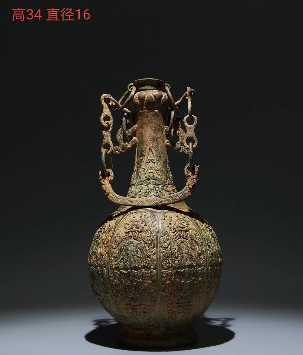 - 【超珍館蔵】春秋 青銅製 龍紋チェーン瓶 青銅器 置物 賞物 古賞物 古董品 古美術品 時代物 旧家蔵出 稀少珍蔵品