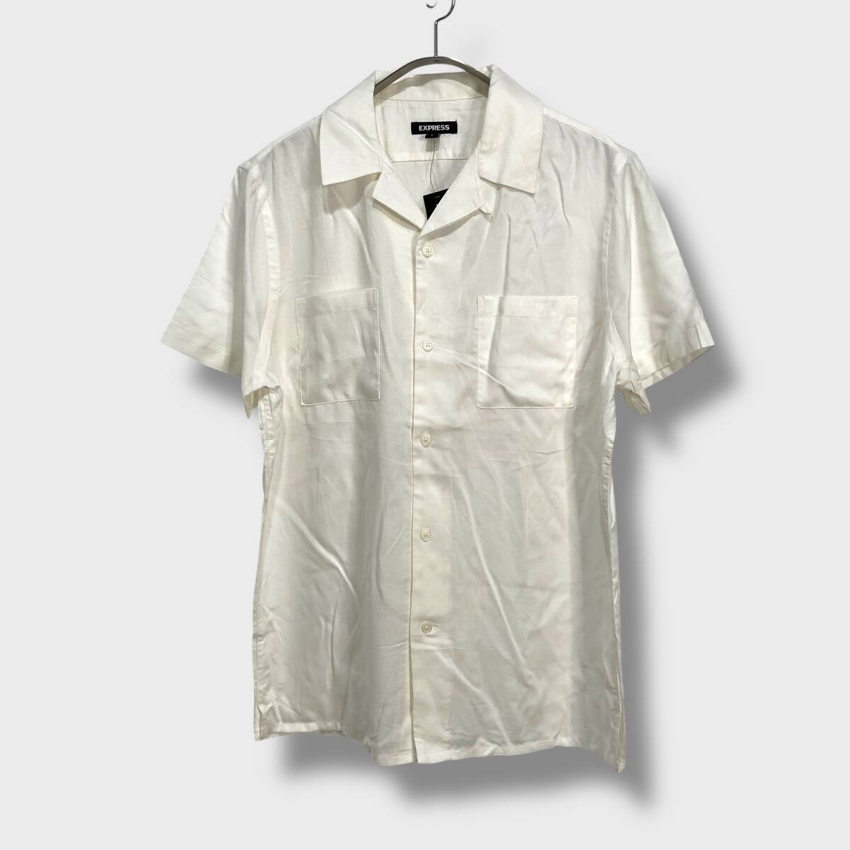 > ☆送料無料☆新品タグ付き☆EXPRESS☆エクスプレス☆オープンカラー半袖シャツ☆ビスコースレーヨン☆白☆S☆I25M